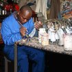 Hakuna Matata is a small metal and horn workshop located in Nairobi. George, the head entrepreneur in the unit, works with his men to create unique candle-holders, metal animals and decorative bowls. Due to a lack of funds his parents were unable to send him to high school to further his education. George was hired as a casual day laborer and finally moved to Nairobi. It was there that he was hired by a company to make copper gift items. George used this skill to start crafting home décor items from recycled metal. Subsequently, he has been able to train many people who have also began their own businesses. more ▶