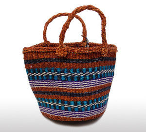 The Sisal Sisters are a group of women in Kakuyuni, Kenya who make bags out of sisal. This craft is indigenous to their village and has been passed down for many generations. The Sisal Sisters’ love and labor is reflected in the various colors, designs and weaving patterns on the bags. First the women pick leaves from the sisal plant, strip the fibers and roll them on their legs into twine. They dye the twine into different colors, dried it in the sun and then weave the strands into bags. The larger bags can take a woman up to one month to complete. Originally used for carrying coffee and vegetables and even as donkey muzzles, we use these bags to hold anything from towels to TP. more ▶