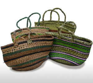 The Sisal Sisters are a group of women in Kakuyuni, Kenya who make bags out of sisal. This craft is indigenous to their village and has been passed down for many generations. The Sisal Sisters’ love and labor is reflected in the various colors, designs and weaving patterns on the bags. First the women pick leaves from the sisal plant, strip the fibers and roll them on their legs into twine. They dye the twine into different colors, dried it in the sun and then weave the strands into bags. The larger bags can take a woman up to one month to complete. Originally used for carrying coffee and vegetables and even as donkey muzzles, we use these bags to hold anything from towels to TP. more ▶